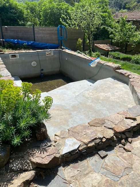 La piscine est le premier chantier que nous avons achevé avant les vacances d'été. Pour des raisons écologiques, je n'en voulais pas mais elle était déjà là.